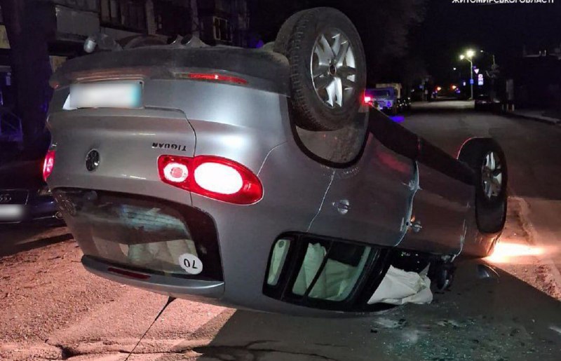 Нічна ДТП у Житомирі: п’яна водійка перекинула автомобіль після зіткнення